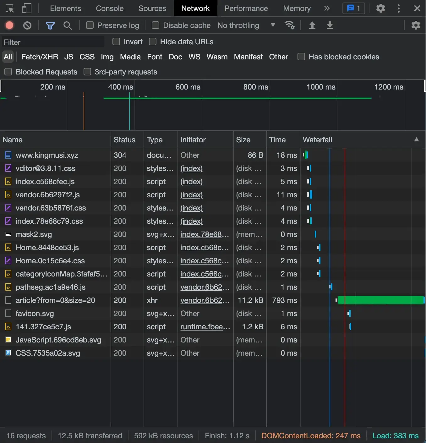 - 知道各种资源的加载时间,分析哪些资源加载慢