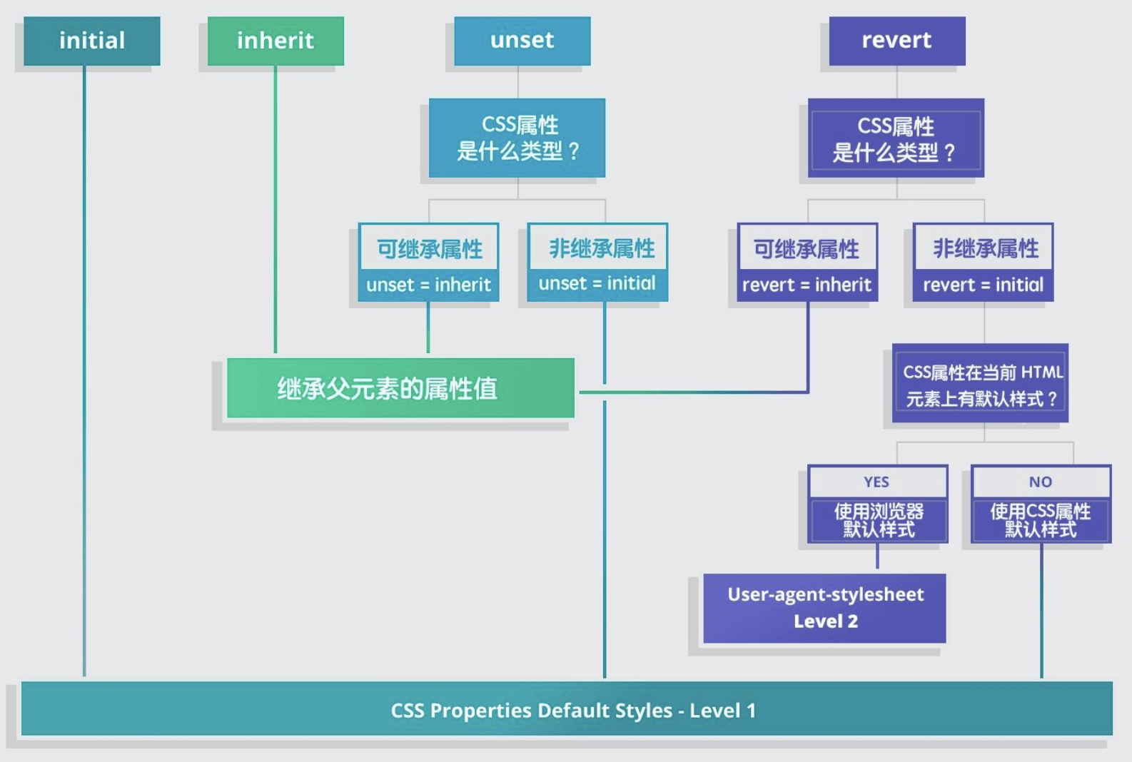 在 CSS 中提供了几个属性值,可以用来处理 CSS 属性的继承。这几个属性值就是 initial